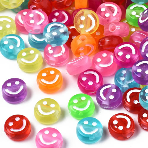 Transparent Acrylperlen – Flach rund, Smiley, Farbmix