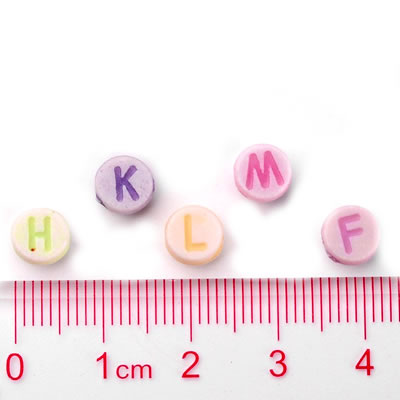 Runde, Pastellfarbige Buchstabenperlen (A-Z wählbar) mit bunter Schrift aus Acryl