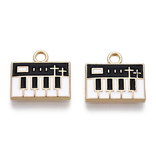 Pianoanhänger, Emaille/Alloy, 14x13mm, Goldfarben, 1 Stück